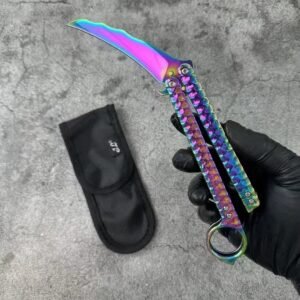 This balisong is sharp with tons of attitude. Measuring at 9″ inches overall, the stainless steel blade is perfect for everyday carry. The latch locks the handles in both the open and closed positions to avoid any accidental openings or closings. Fun and lightweight for trick/flipping use.