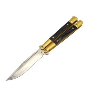 This balisong is sharp with tons of attitude. Measuring at 9″ inches overall, the stainless steel blade is perfect for everyday carry. The latch locks the handles in both the open and closed positions to avoid any accidental openings or closings. Fun and lightweight for trick/flipping use.